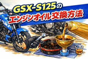 GSX-S125/R125のエンジンオイル交換方法|初心者でもできるDIY手順を写真付きで解説 GSX-S125/R125のエンジンオイル交換は、バイク初心者でも自分でできるメンテナンス作業です。私自身、購入当初は「カウル付きだけど本当に自分でできるの?」と不安で...